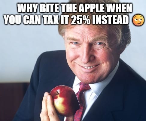 Donald Trump has threatened a 25% tariff on iPhones and Samsung phones not made in the US. This puts significant pressure on Apple to move its production back to the US. His comments, almost instantly wiped off $70 billion from Appleās market value and sent shares tumbling. Apple closed trade -3.02%. Apple shares are down 22% year to date. Trump warned that all phones sold in the U.S. must be made domestically, rejecting Appleās recent move to shift U.S.-bound iPhone assembly to India. He extended the tariff threat to Samsung and other foreign manufacturers, saying āit wouldnāt be fairā otherwise. Trying to relocate iPhone production will not only take significant time but it would also mean iPhone production would be prohibitively expensive, tripling the retail price to $3,500 per device.