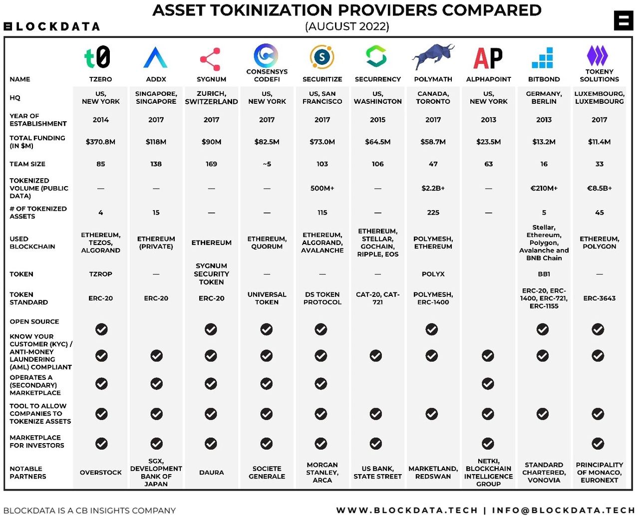 While ANZ and NAB are developing platforms, Australia's tokenisation scene is still in its infancy. Conversely, international contenders in the US and Singapore have made substantial headway in tokenisation. We've Data from Blockdata lists the top 10 asset tokenisation companies in the table below.